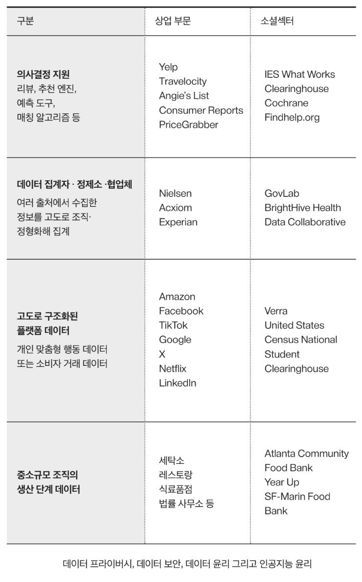 논의를 이어가기 전, 규제 없이 운영되어 온 상업적 데이터 생태계가 소외된 집단에 불이익과 피해를 초래해왔다는 점을 명확히 인식할 필요가 있다. 대규모의 개인화 정보에 대한 접근에는 엄격한 규제와 통제가 반드시 따라야 하고, 데이터 윤리는 특히 공공 영역과 비영리 영역에서 민감하게 다뤄져야 한다. 이들 영역에서는 신뢰가 곧 조직의 존립을 결정하기 때문이다. 상업적 데이터 생태계에 윤리적으로 비판받을 지점이 존재하는 것은 사실이지만, 그 핵심 메커니즘 중 일부는 긍정적인 사회환경적 성과를 창출하는 데 충분히 활용할 가치가 있다.
