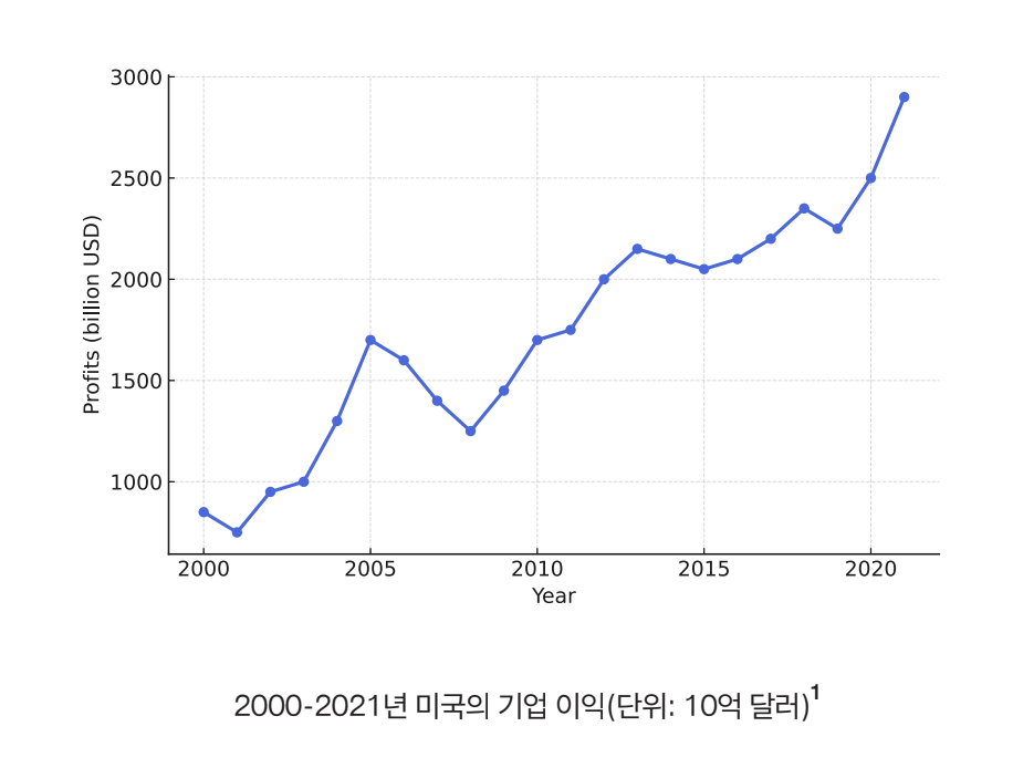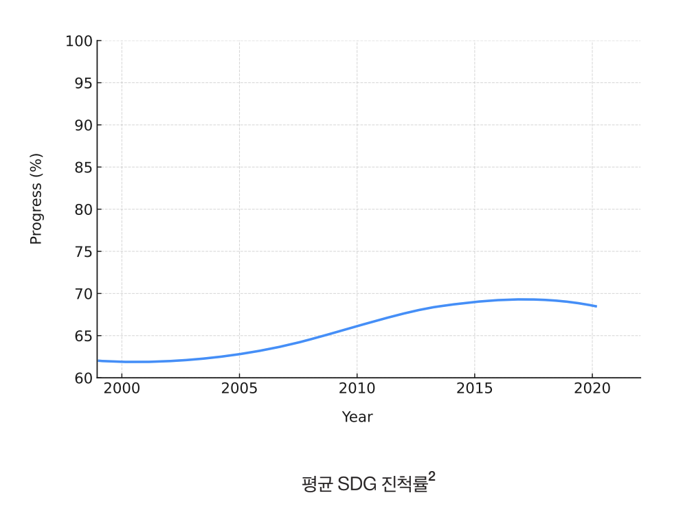 2021년, 미국 기업은 2조 7,700억 달러에 달하는 사상 최대의 수익을 기록했다. 이는 2000년 7,860억 달러 대비 크게 증가한 수치다. 반면 사회적 진보의 양상은 대조적인 흐름을 보였다. 2000년부터 2021년까지 유엔 SDGs 이행 수준은 미미하게 증가하는 데 그쳤고, 20년간의 누적 진척률은 10%에도 미치지 못했다.
